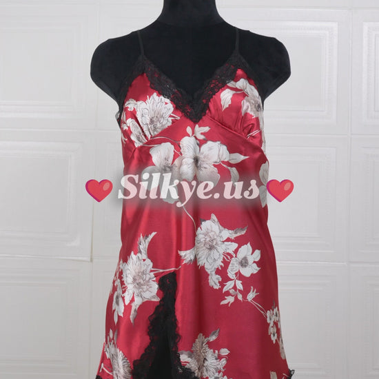 This champagne/black/blue satin slip dress features delicate lace trim for a soft, romantic feel. Its smooth, silky texture hugs the body gracefully. A perfect blend of elegance and sensuality for intimate moments.