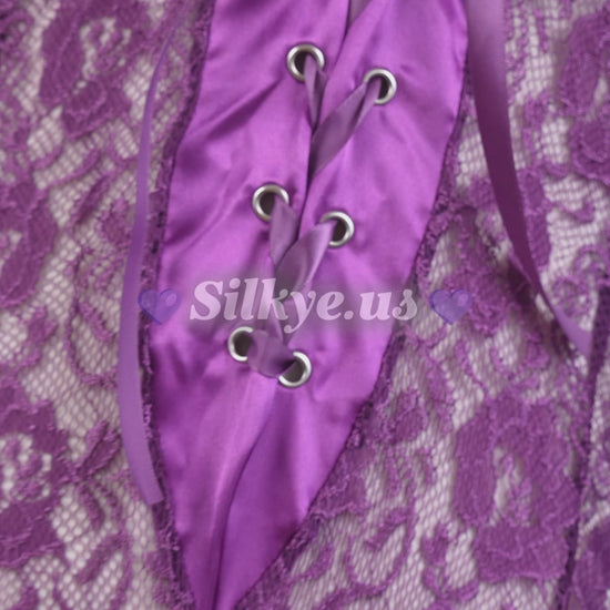 这款黑色蕾丝紧身胸衣内衣套装以精致的花卉刺绣和系带前部细节为特色,彰显时尚魅力。