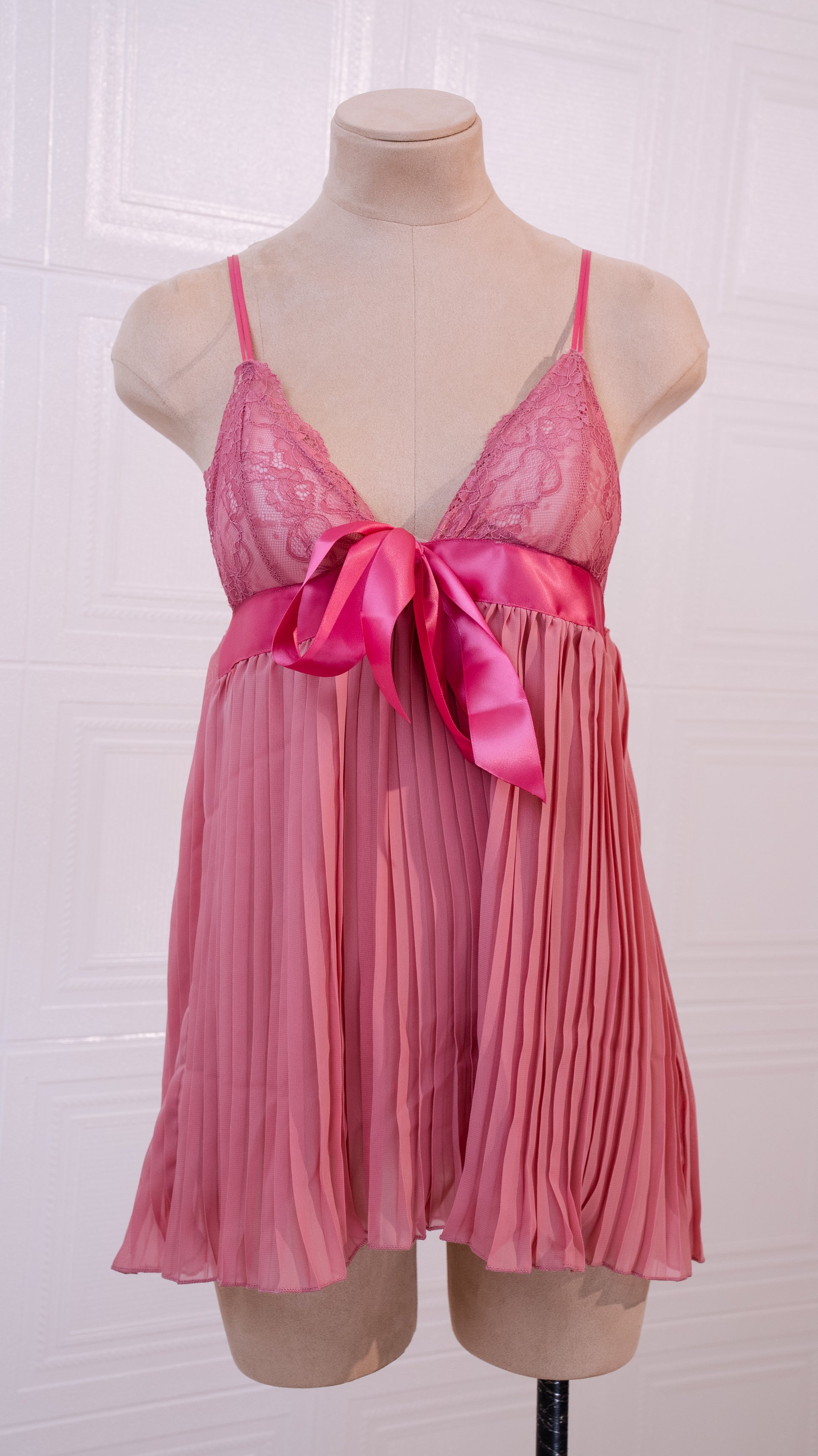Serene Ribbon Pleat Babydoll Pink
