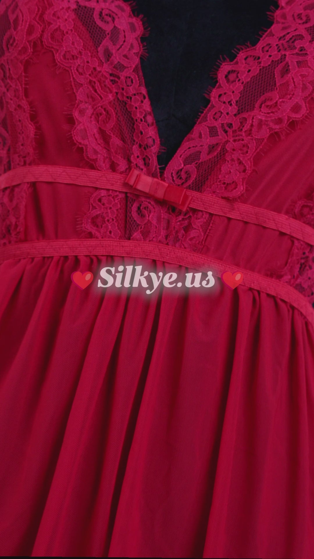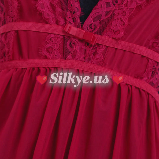 Sheer Mesh Deep V Lace Cami Nightgown Red